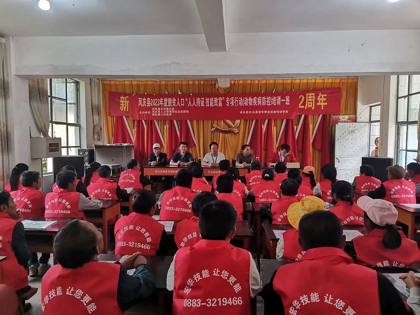 為深入貫徹落實“技能云南”行動要求,以“提技能、促就業、增收入”為核心,以“規范、提質”為目標組織脫貧人口開展生產經營和就業技能等職業培訓,提升職業技能水平,提高持證率和就業率。根據縣委、縣政府統一安排部署,自8月24日召開2023年度第一批“人人持證 技能致富”專項行動培訓項目啟動會議以來,鳳慶縣鄉村振興局、鳳慶縣人力資源和社會保障局、各鄉(鎮)、村(社區)三級聯動,云縣宏華職業技能培訓學校迅速行動。9月1日,勐佑鎮新寨村(動物疾病防控)率先開班。